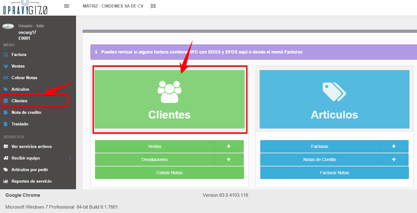 1. Primero nos vamos al listado de clientes, desde la barra lateral o desde el icono de clientes de la pantalla principal