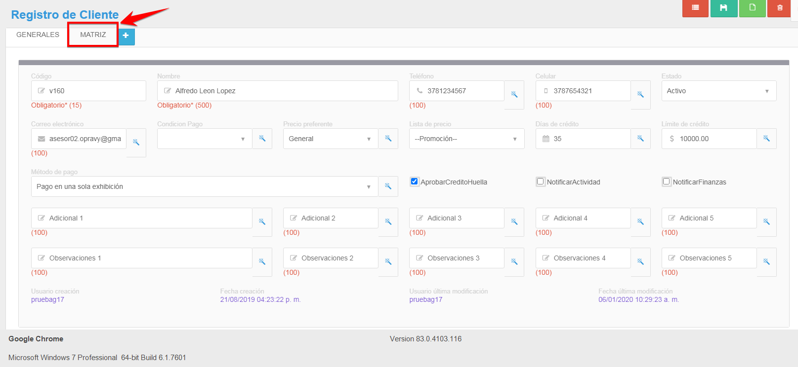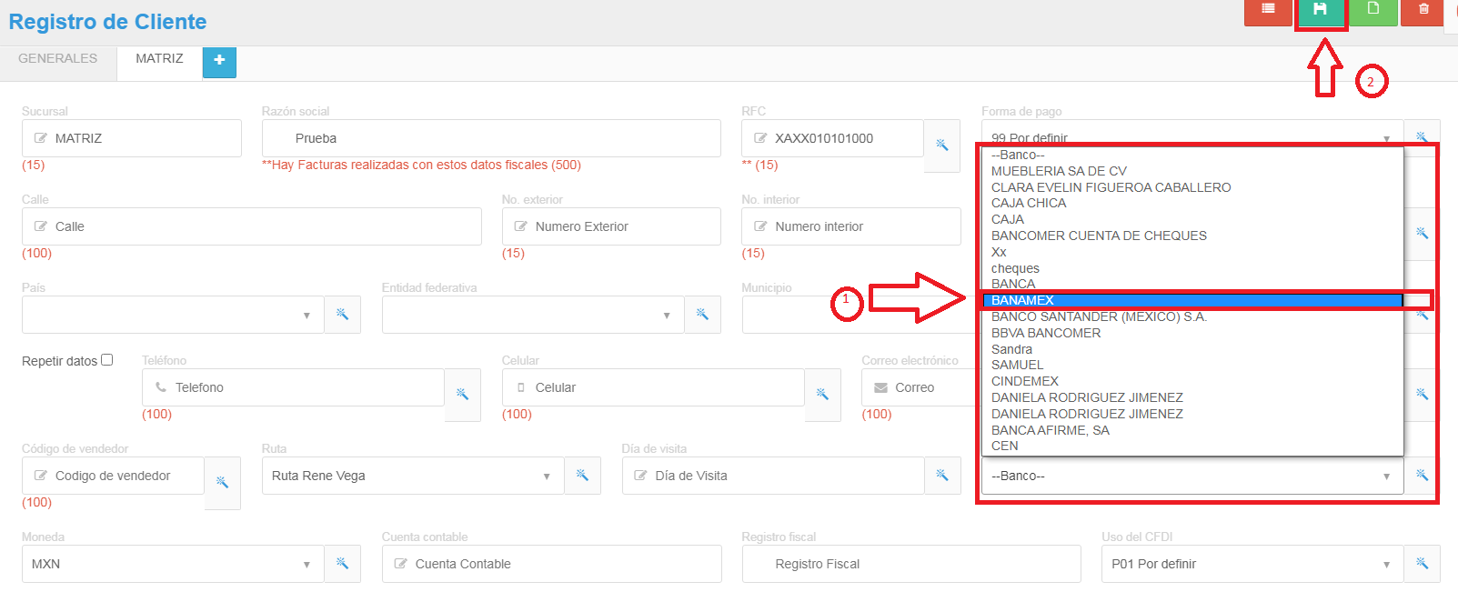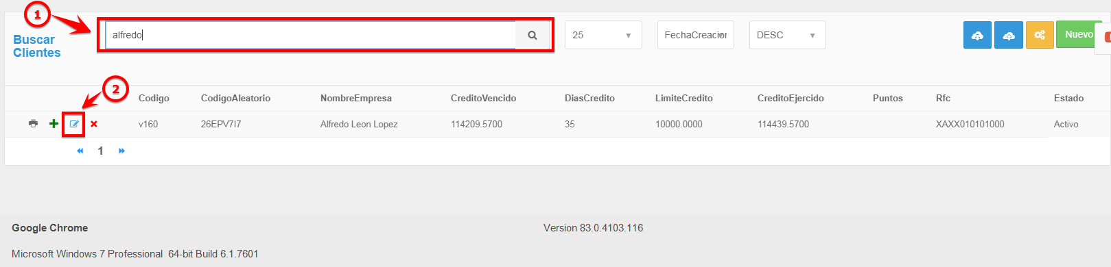 (2) Seleccionamos editar al cliente que queremos agregar banco