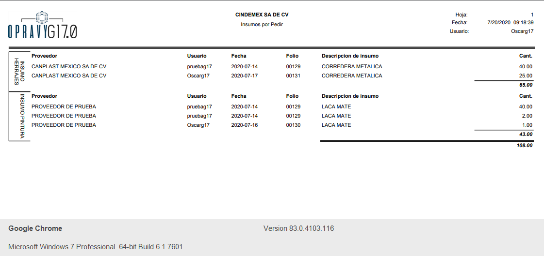 Cant.: Se relaciona con la cantidad de unidades que hacen falta en los insumos.