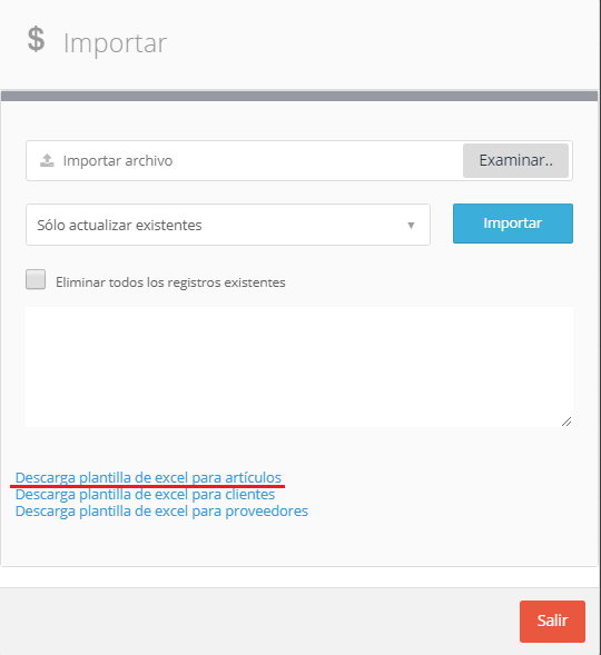 Seleccione la primera opción (subrayada en rojo) “Descarga plantilla de excel para artículos”