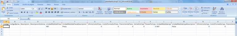 Abra el documento de excel que se descargó en la parte inferior izquierda, llene las celdas necesarias para registrar sus artículos.