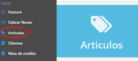 - De clic en el apartado “Artículos” (cualquiera de los dos menús señalados nos lleva al mismo sitio)