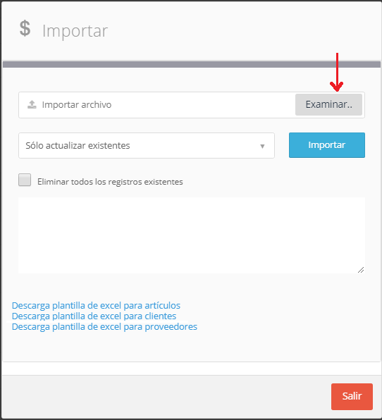 - Seleccione la primera opción (subrayada en rojo) “Descarga plantilla de Excel para artículos”