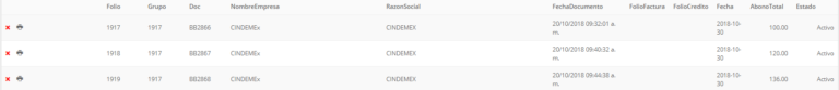 - verá en su pantalla la lista de los cobros que se han generado, puede imprimirlos dando clic en el icono de la impresora.