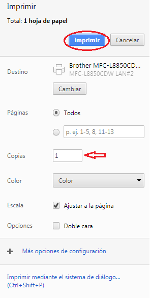 - Le abrirá una ventana emergente, donde verá el documento para imprimir, de clic en el icono de la impresora que se encuentra en la parte superior derecha y posteriormente le aparecerán las opciones de impresión del documento, teclee el número de copias que necesita imprimir del documento y por último seleccione el botón !imprimir» (de color azul.