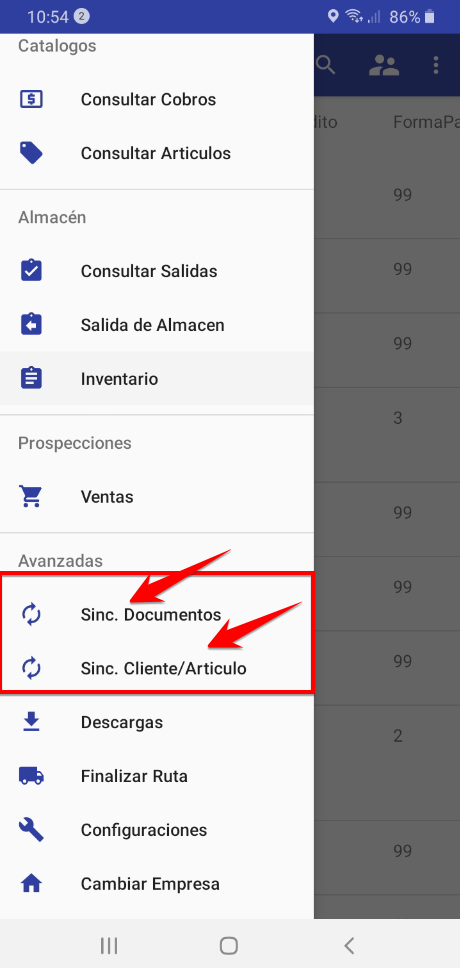 Sinc. Cliente/Articulo: En esta opción se sincronizaran todos los clientes y artículos del sistema