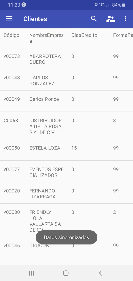 Para sincronizar la información de G17 Móvil con G17 Web, hacemos clic en el ícono "con flechas" del menú: