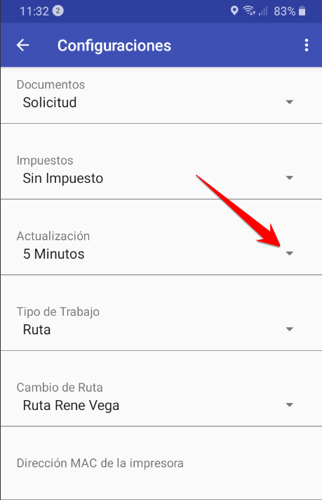 Nota: La opción de "0 Minutos" Es para estar actualizando siempre.