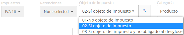 - 02.-Si objeto de Impuesto, se utiliza siempre que el articulo tenga algun impuesto o retencion.