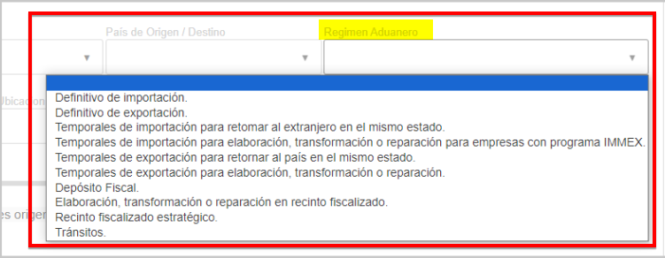 Incluir el Regimiento Aduanero, el cual se obtiene del catalogo c_RegimenAduanero.