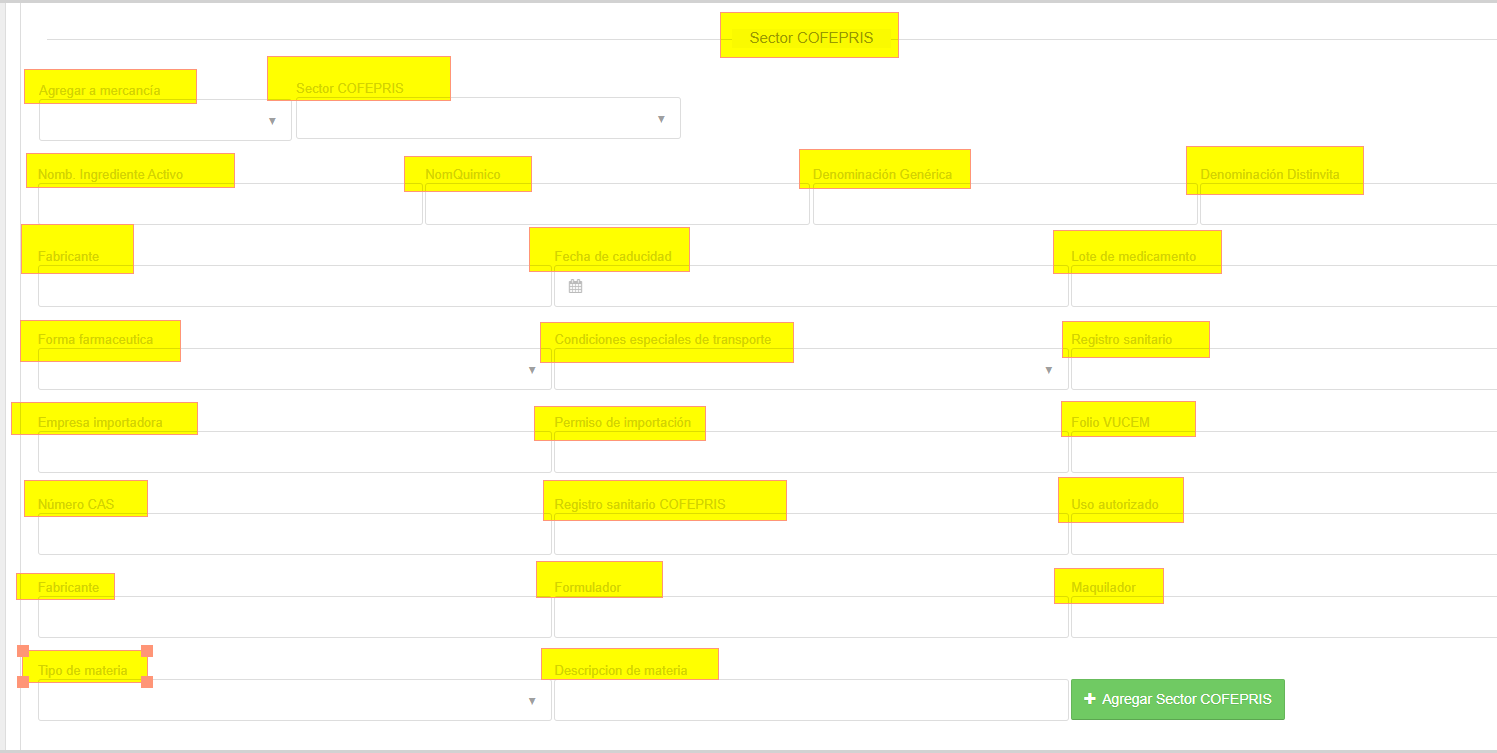 Se incorporan 16 detalles condicionados a la clave especificada en el campo “Sector Cofepris” y 3 adicionales para los traslados internacionales.