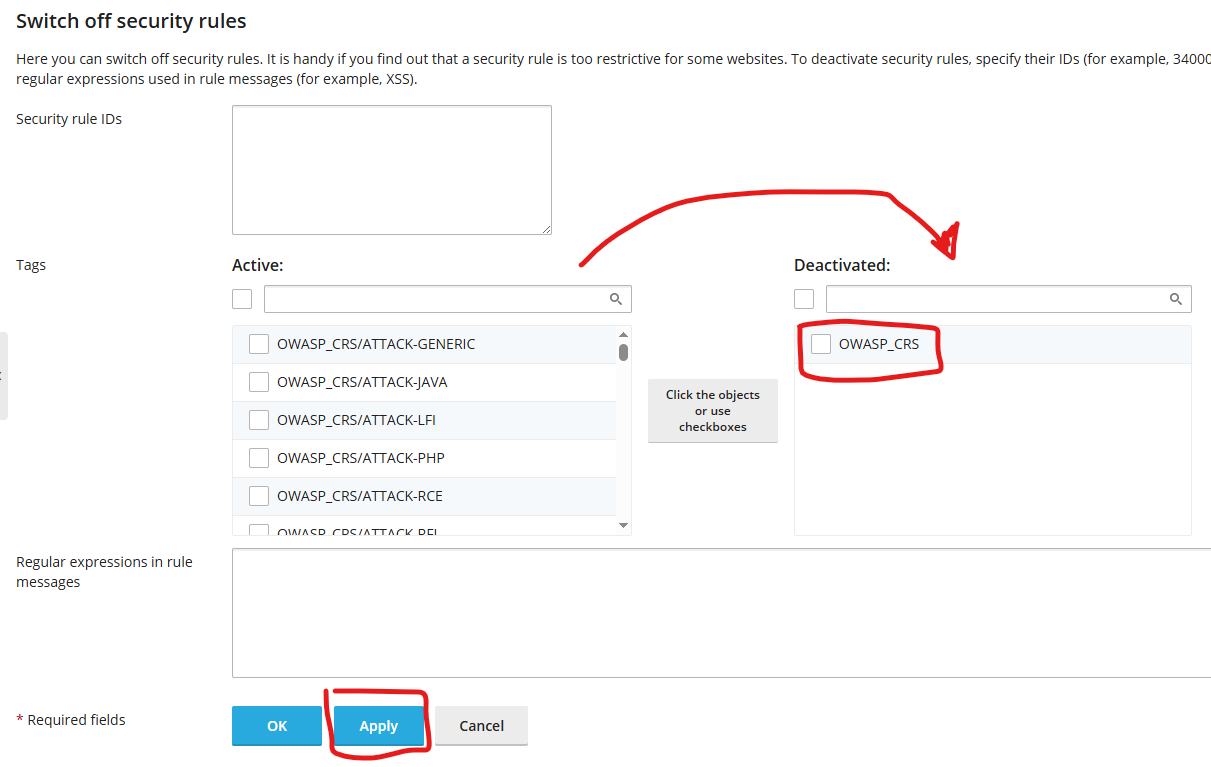 Desactivar la regla OWASP_CRS del firewall del servidor donde se encuentra la API para permitir las conexiones